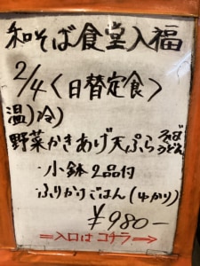 夜の部日替わりメニュー