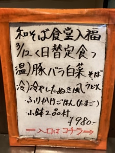 夜の部日替わりメニュー