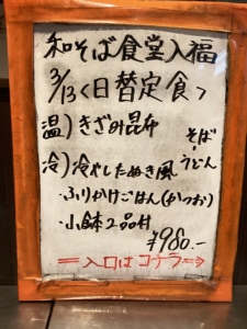 夜の部日替わりメニュー